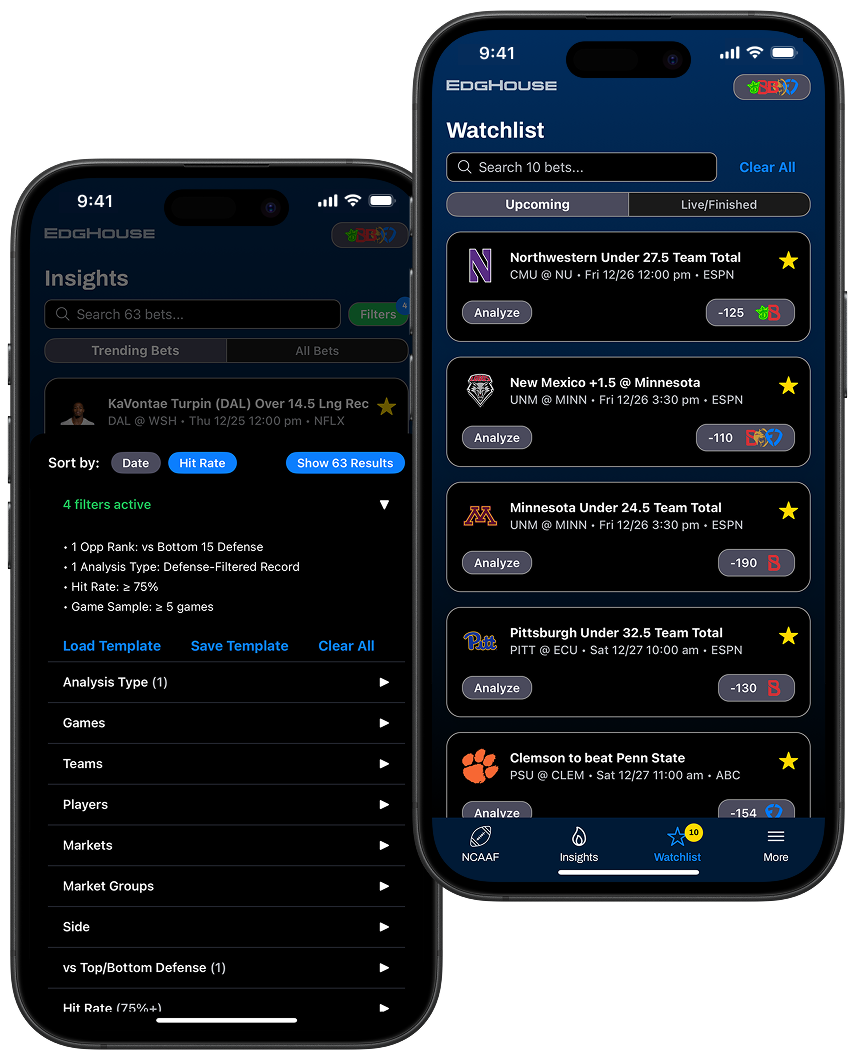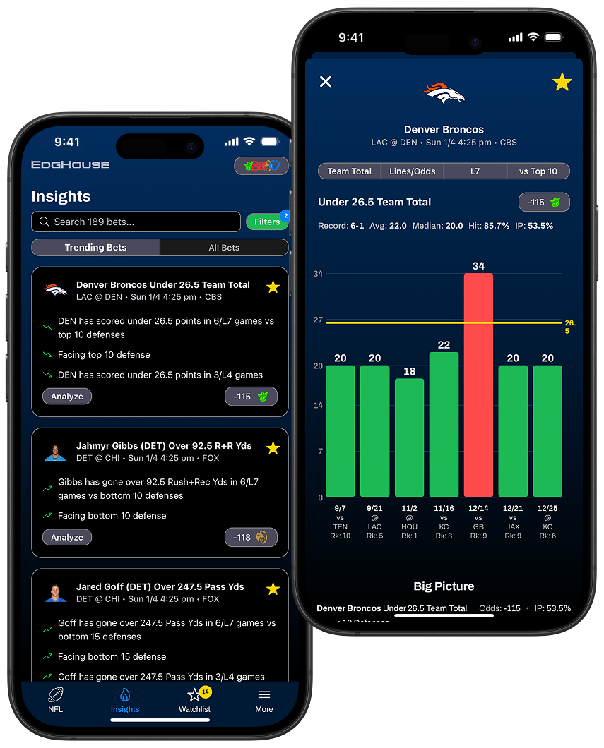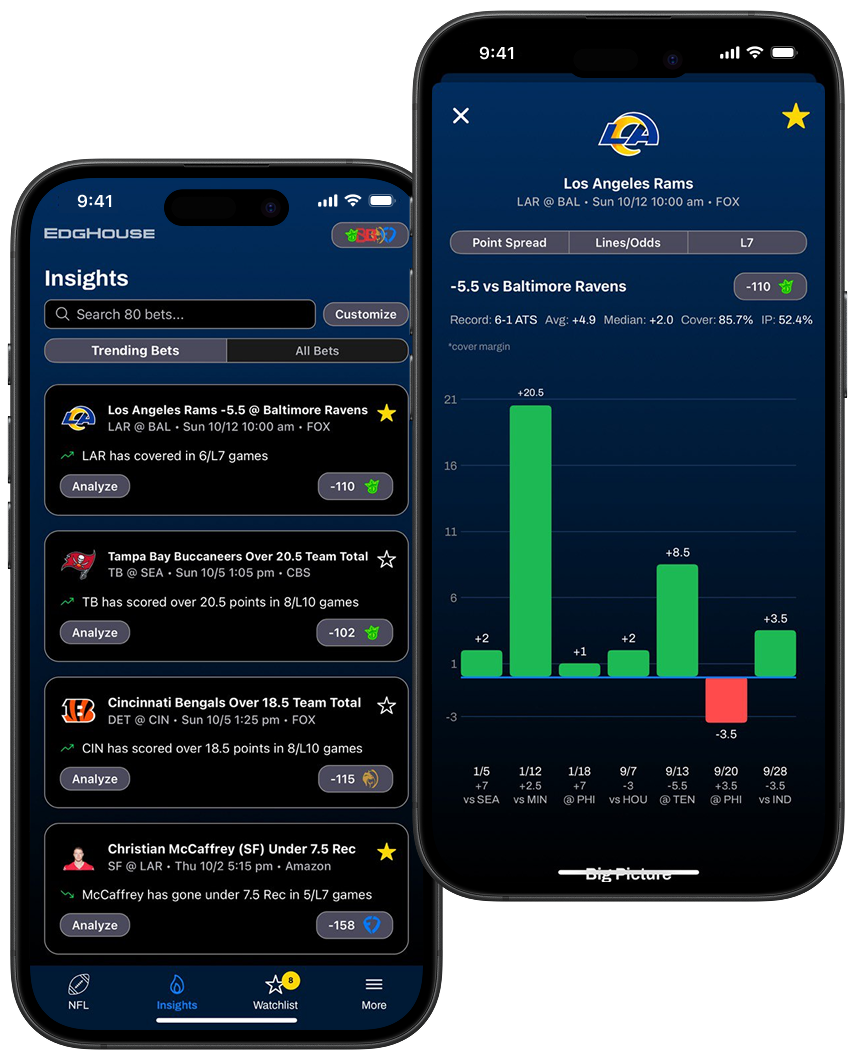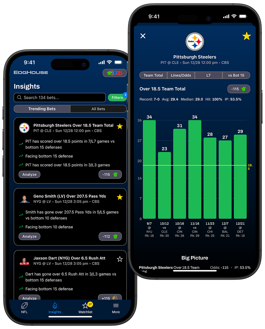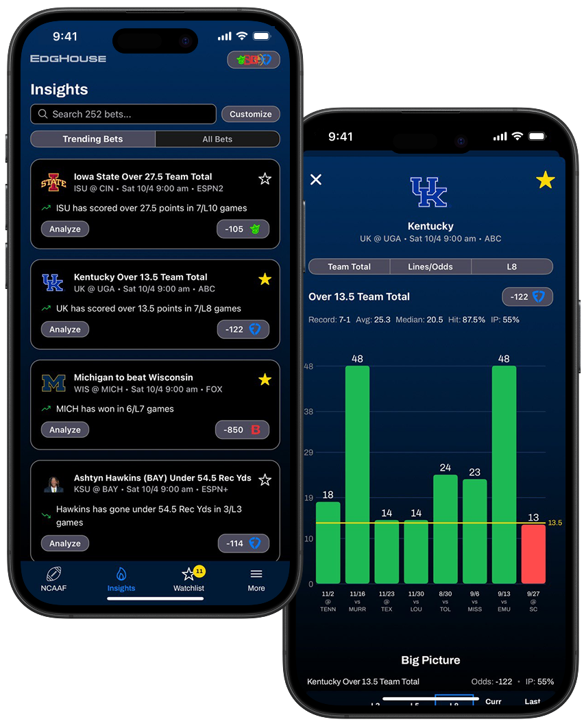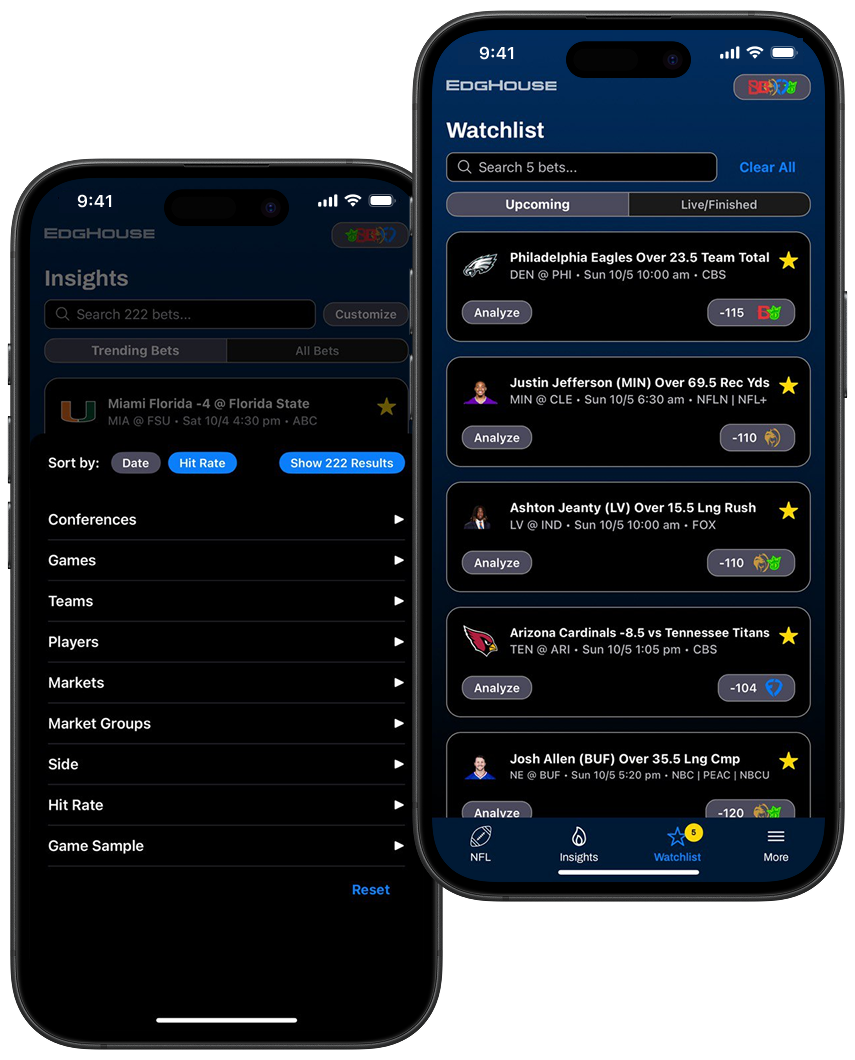 EdgHouse is a premium sports betting research platform. We currently cover NFL, NBA, MLB, WNBA, NCAAF, & NCAAM betting and provide users with betting tools designed to help them make smarter data-driven betting decisions
